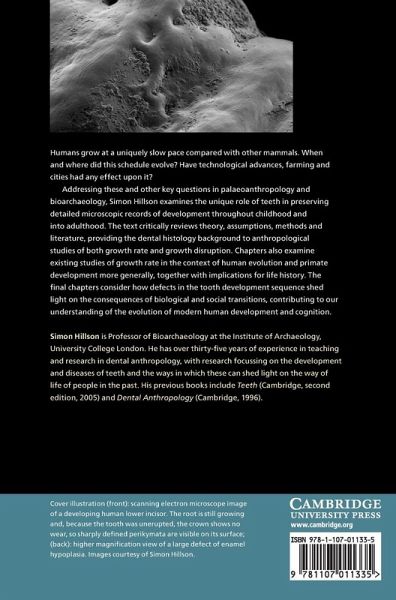 Acknowledgements 1. Why development and why teeth? 2. Development schedule, body size and brain size 3. How teeth grow in living primates 4. Microscopic markers of growth in dental tissues 5. Building dental development sequences 6. Human evolution, pace of development and life history 7. Dental markers of disease and malnutrition 8. Health, stress, evolution, the rise of agriculture and towns 9. Conclusion Appendix A. Tables Appendix B. Technical information References Index.