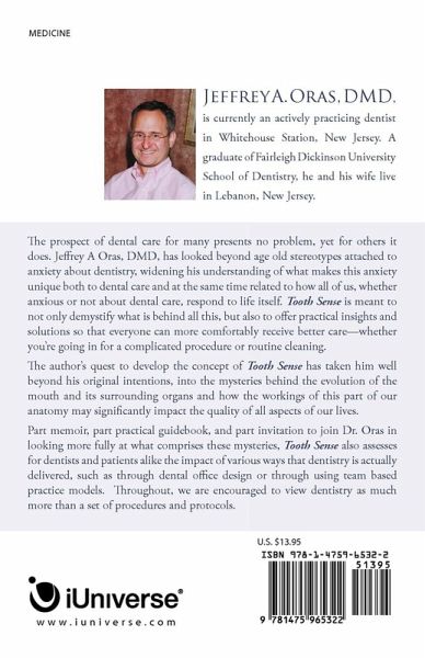 The prospect of dental care for many presents no problem, yet for others it does. Jeffrey A Oras, DMD, has looked beyond age old stereotypes attached to anxiety about dentistry, widening his understanding of what makes this anxiety unique both to dental care and at the same time related to how all of us, whether anxious or not about dental care, respond to life itself. Tooth Sense is meant to not only demystify what is behind all this, but also to offer practical insights and solutions so that everyone can more comfortably receive better care-whether you're going in for a complicated procedure or routine cleaning. The author's quest to develop the concept of Tooth Sense has taken him well beyond his original intentions, into the mysteries behind the evolution of the mouth and its surrounding organs and how the workings of this part of our anatomy may significantly impact the quality of all aspects of our lives. Part memoir, part practical guidebook, and part invitation to join Dr. Oras in looking more fully at what comprises these mysteries, Tooth Sense also assesses for dentists and patients alike the impact of various ways that dentistry is actually delivered, such as through dental office design or through using team based practice models. Throughout, we are encouraged to view dentistry as much more than a set of procedures and protocols.