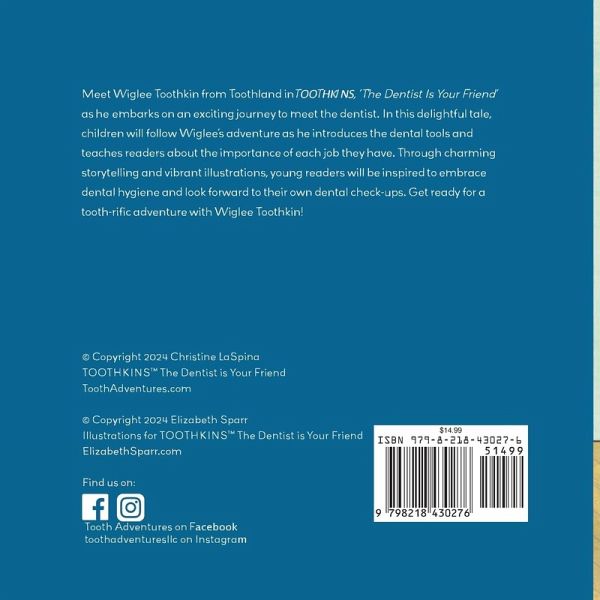 Meet Wiglee Toothkin from Toothland in Toothkins, 'The Dentist Is Your Friend' as he embarks on an exciting journey to meet the dentist! In this delightful tale, children will follow Wiglee's adventures as he introduces the dental tools and teaches readers about the importance of each job they have. This story will teach children not to be afraid to go the dentist. Through charming storytelling and vibrant illustrations, young readers will be inspired to embrace dental hygiene and look forward to their own dental check-ups. Get ready for a tooth-rific adventure with Wiglee Toothkin!