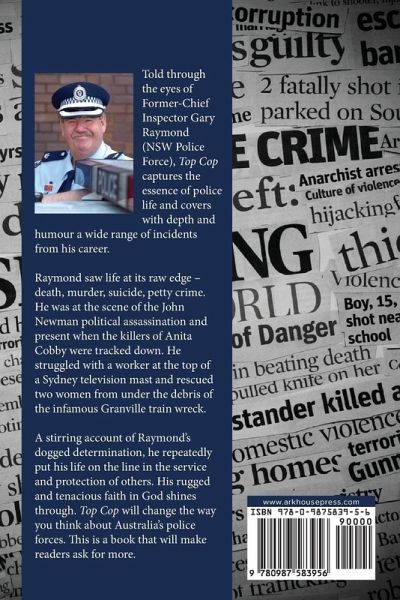 Told through the eyes of Former-Chief Inspector Gary Raymond (NSW Police Force), Top Cop captures the essence of police life and covers with depth and humour a wide range of incidents from his career. Raymond saw life at its raw edge – death, murder, suicide, petty crime. He was at the scene of the John Newman political assassination and present when the killers of Anita Cobby were tracked down. He struggled with a worker at the top of a Sydney television mast and rescued two women from under the debris of the infamous Granville train wreck. A stirring account of Raymond’s dogged determination, he repeatedly put his life on the line in the service and protection of others. His rugged and tenacious faith in God shines through. Top Cop will change the way you think about Australia’s police forces. This is a book that will make readers ask for more.