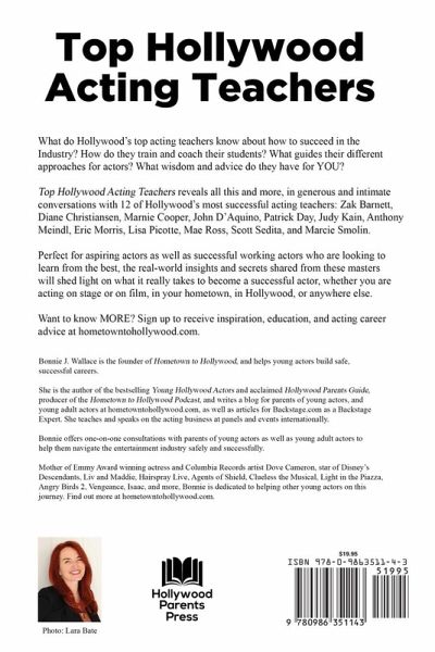 What do Hollywood's top acting teachers know about how to succeed in the Industry? How do they train and coach their students? What guides their different approaches for actors? What wisdom and advice do they have for YOU? Top Hollywood Acting Teachers reveals all this and more, in generous and intimate conversations with 12 of Hollywood's most successful acting teachers: Zak Barnett, Diane Christiansen, Marnie Cooper, John D'Aquino, Patrick Day, Judy Kain, Anthony Meindl, Eric Morris, Lisa Picotte, Mae Ross, Scott Sedita, and Marcie Smolin. Perfect for aspiring actors as well as successful working actors who are looking to learn from the best, the real-world insights and secrets shared from these masters will shed light on what it really takes to become a successful actor, whether you are acting on stage or on film, in your hometown, in Hollywood, or anywhere else. Want to know MORE? Sign up to receive inspiration, education, and acting career advice at https://hometowntohollywood.com. Bonnie J. Wallace is the founder of Hometown to Hollywood, and helps young actors build safe, successful careers. She is the author of the bestselling Young Hollywood Actors and acclaimed Hollywood Parents Guide, producer of the Hometown to Hollywood Podcast, and writes a blog for parents of young actors, and young adult actors at hometowntohollywood.com, as well as articles for Backstage.com as a Backstage Expert. She teaches and speaks on the acting business at panels and events internationally. Bonnie offers one-on-one consultations with parents of young actors as well as young adult actors to help them navigate the entertainment industry safely and successfully. Mother of Emmy Award winning actress and Columbia Records artist Dove Cameron, star of Disney's Descendants, Liv and Maddie, Hairspray Live, Agents of Shield, Clueless the Musical, Light in the Piazza, Angry Birds 2, Vengeance, Isaac, and more, Bonnie is dedicated to helping other young actors on this journey. Find out more at hometowntohollywood.com.