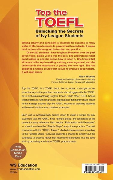 Top the TOEFL is a TOEFL book like no other. It recognizes an essential key to the problem: students who struggle with the TOEFL have problems mastering English. Hence, while other TOEFL books teach strategies with long wordy explanations that hardly make sense to the average student, Top the TOEFL focuses on teaching students in the most intuitive way possible: examples. Each unit is systematically broken down to make it simple for any student to Top the TOEFL. First, "Simple Steps" are condensed at the outset for easy reference. Next begins "Elaboration with Examples" — a section where the "Simple Steps" are put into practice. The unit concludes with the "TOEFL Trainer" which divides exercises according to the "Simple Steps", allowing students a chance to directly put the strategies to practice rather than just throwing students into the deep end by providing a full set of TOEFL practice tests.