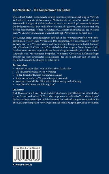 Die Autoren bieten einen fundierten Einblick in das Kompetenzportfolio von außergewöhnlich erfolgreichen Verkäufern. Das Zusammenspiel zwischen den richtigen Verhaltensweisen, Verkaufswissen und persönlichen Kompetenzen bietet demnach jedem Verkäufer die Chance, sein Potenzial erheblich zu steigern. Dieses Potenzial wird durch einen strukturierten persönlichen Entwicklungsplan entfaltet, der in diesem Buch vorgestellt wird. Mit konkreten Beispielen, Kompetenzchecks und Reflexionsfragen erhaltenSie einen detaillierten Trainingsplan, der Ihnen hilft, sich oder Ihr Team zu High-Performance-Leistungen zu entwickeln.