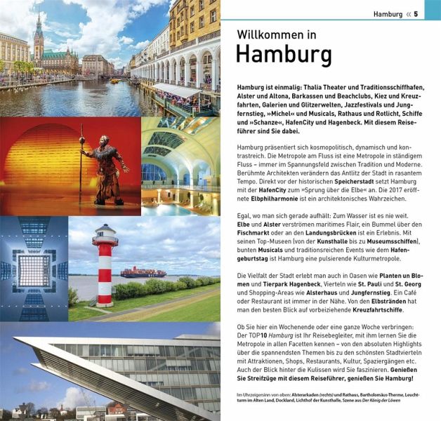 Alles für Ihre Reise auf einen Blick: Der handliche Top-10-Reiseführer stellt Ihnen die Highlights der Stadt Hamburg übersichtlich und kompakt in Form von Top-10-Listen vor: Von den Highlights über Themenlisten, Restaurants und Touren bis zu tollen Extras für einen unvergesslichen Urlaub.
