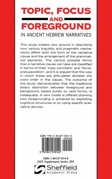 This study breaks new ground in describing how various linguistic and pragmatic mechanisms affect both the form of the narrative clause and the arrangement of the grammatical elements. The various possible forms that a narrative clause can take are classified in terms of their 'topic-comment' and 'focus-presupposition', and it is argued that the way in which these are articulated dictates the word order in the clause. The outcome of the study demonstrates that the traditional binary distinction between foreground and background, based purely on verb forms, is inadequate. A new model is offered showing how foregrounding is achieved by exploiting cognitive structures or by using specific evaluative devices.