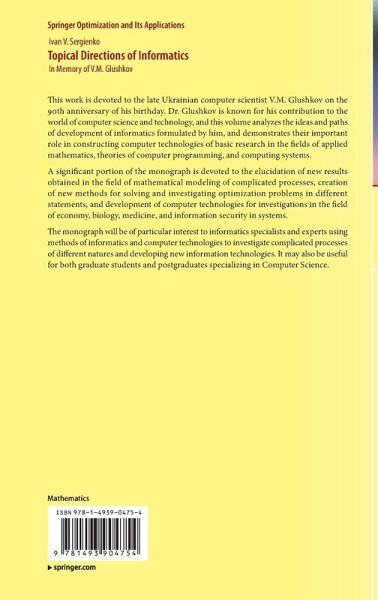 This work is devoted to the late Ukrainian computer scientist V. M. Glushkov on the 90th anniversary of his birthday. Dr. Glushkov is known for his contribution to the world computer science and technology and this volume analyzes the ideas and paths of development of informatics formulated by him and demonstrate their important role in constructing computer technologies of basic research in the fields of applied mathematics, theories of computer programming and computing systems.