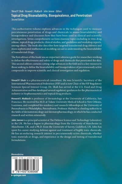 Vinod P. Shah is a pharmaceutical consultant. He was Scientific Secretary of International Pharmaceutical Federation (FIP) and is now Chair of Regulatory Sciences Special Interest Group of FIP. Dr. Shah has served at the U.S. Food and Drug Administration and has developed several regulatory guidances for the pharmaceutical industry in biopharmaceutics and topical drug products. Dr. Shah is a fellow of FIP as well as the American Association of Pharmaceutical Scientists (AAPS), where he served as president for a year. He is a recipient of an honorary doctorate from Semmelweis University, Budapest, Hungary. Howard I. Maibach is professor of dermatology at the University of California, San Francisco. He received his M.D. at Tulane University Medical School in New Orleans, Louisiana, and completed his residency and research fellowships at the University of Pennsylvania in Philadelphia, Pennsylvania. Professor Maibach is a leading authority in the fields of dermatotoxicology and dermatopharmacology, in which he has conducted research and written extensively. Prof. Maibach has served on the editorial boards of more than thirty scientific journals and is a member of many professional societies, including the American Academy of Dermatology and the International Commission on Occupational Health. John Jenner is a principal scientist at The Defence Science and Technology Laboratory in the UK. He has a degree in pharmacology from the University of Manchester in Manchester, UK, and a Ph.D. from the University of Surrey, Guildford, UK. John has spent his career studying defense against and treatment of highly toxic chemicals. He has an enduring research interest in percutaneously active chemicals, whether toxic materials or drugs, and experience in the design and testing of transdermal formulations. His current interests include the translation of in vitro penetration measurements to in vivo using mathematical modelling.