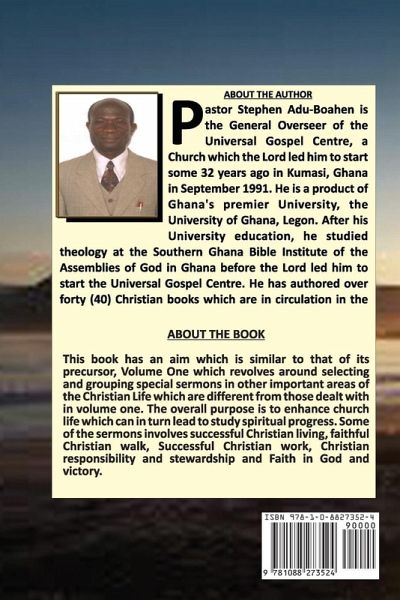 This book has an aim which is similar to that of its precursor, Volume One which revolves around selecting and grouping special sermons in other important areas of the Christian Life which are different from those dealt with in volume one. The overall purpose is to enhance church life which can in turn lead to study spiritual progress. Some of the sermons involves successful Christian living, faithful Christian walk, Successful Christian work, Christian responsibility and stewardship and Faith in God and victory.