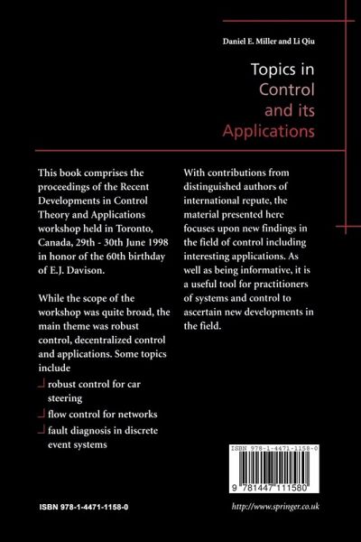 Prof. Edward J. Davison (Ted) is a man of many talents. He started his career in music, veered into engineering physics for his undergraduate degree and moved to applied mathematics for his MASc degree; although accepted to do a PhD in cosmology, he ended up doing a PhD at Cambridge University in the area of systems control under the direction of the renowned Prof. Howard Rosenbrock. This breadth ofability underscores his ensuing thirty-five years of work in systems control, which spans the very applied to the highly theoretical. Equally important, he is arguably one of the most enthusiastic proponents of the area - he argued in the 1997 Bode Lecture that, unlike popular opinion, theory is lagging practise, with many exciting areas of science and engineering requiring input from the systems control area. Ted's contributions to systems control are many. His first journal paper was on the area of model reduction, which became a "citation classic". He is commonly regarded to have introduced the word "robust" to the area, and has published extensively in the area of robust control, ranging from his 1976 paper on the robust servomechanism problem to the more recent paper on computing the real stability radius. He was in on the ground floor ofthe control of large scale systems, introducing such fundamental notions as decentralized fixed modes, and posing and solving the decentralized robust servomechanism problem. He has made contributions to determining fundamental benefits and limitations of adaptive control.
