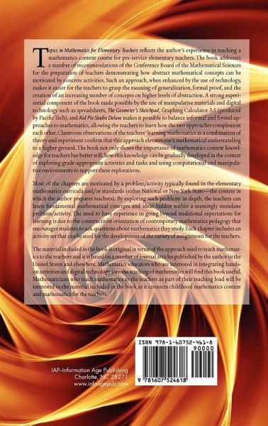This book reflects the author's experience in teaching a mathematics content course for pre-service elementary teachers. The book addresses a number of recommendations of the Conference Board of the Mathematical Sciences for the preparation of teachers demonstrating how abstract mathematical concepts can be motivated by concrete activities. Such an approach, when enhanced by the use of technology, makes it easier for the teachers to grasp the meaning of generalization, formal proof, and the creation of an increasing number of concepts on higher levels of abstraction. A strong experiential component of the book made possible by the use of manipulative materials and digital technology such as spreadsheets, The Geometer's Sketchpad, Graphing Calculator 3.5 (produced by Pacific Tech), and Kid Pix Studio Deluxe makes it possible to balance informal and formal approaches to mathematics, allowing the teachers to learn how the two approaches complement each other. Classroom observations of the teachers' learning mathematics as a combination of theory and experiment confirm that this approach elevates one's mathematical understanding to a higher ground. The book not only shows the importance of mathematics content knowledge for teachers but better still, how this knowledge can be gradually developed in the context of exploring grade-appropriate activities and tasks and using computational and manipulative environments to support these explorations. Most of the chapters are motivated by a problem/activity typically found in the elementary mathematics curricula and/or standards (either National or New York State - the context in which the author prepares teachers). By exploring such problems in depth, the teachers can learn fundamental mathematical concepts and ideas hidden within a seemingly mundane problem/activity. The need to have experience in going beyond traditional expectations for learning is due to the constructivist orientation of contemporary mathematics pedagogy that encourages students to ask questions about mathematics they study. Each chapter includes an activity set that can be used for the development of the variety of assignments for the teachers. The material included in the book is original in terms of the approach used to teach mathematics to the teachers and it is based on a number of journal articles published by the author in the United States and elsewhere. Mathematics educators who are interested in integrating hands-on activities and digital technology into the teaching of mathematics will find this book useful. Mathematicians who teach mathematics to the teachers as part of their teaching load will be interested in the material included in the book as it connects childhood mathematics content and mathematics for the teachers.