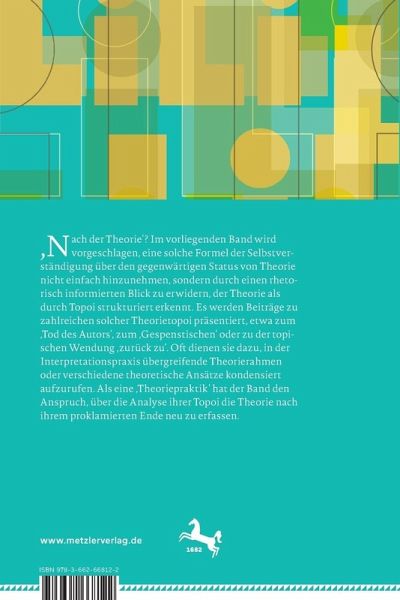 Michael Eggers, Adrian Robanus: Eine Topik der Theorie, nach der Theorie, für die Theorie. Einleitung.- Hanna Engelmeier: Trost in der Trostlosigkeit.- Livia Kleinwächter: De-/Maskieren.- Joachim Harst: Ein Argument, "aus Gegensätzen doppelt geknüpft": Zur Logik des Widersprüchlichen in Rhetorik, Psychoanalyse und Dekonstruktion.- Mirko Limpinsel: "[E]in Begriffsspiel, das an sich selber Halt findet". Zur systemtheoretischen Topik.- Charlotte Jaekel: "Oft ist das Schöne das Funkeln des Wahren". Zum Verhältnis von Literatur und Philosophie bei Michel Serres.- Christoph Paret: "Für Spinoza noch zu früh" - Theorie-Eröffnungszüge.- Patrick Hohlweck: Always already. Tempus der Theorie.- Nicolas Pethes: Der return turn: 'Rückkehr', 'Revision' und 'Backlash' als rhetorische Topoi literaturwissenschaftlicher Methoden- und Begriffsdebatten after theory.- Mike Rottmann: 'Dem Gegenstand gerecht werden': Über einen Topos philologischer Theorieverwerfung in der Literaturwissenschaft.- Martin Roussel: Enthaltung, désistance (in der Frage der Theorie).- Thomas Hecken: Vgl..- Julian Schröter: 'Tod des Autors' und andere Topoi der Autorschaftstheorien. Eine rhetorische Analyse der Debattenkonstellation.- Florian Scherübl: Das Spektrum des Spektralen: Gespenster in den Geisteswissenschaften.- Philipp Weber: Der Topos des Untoten in der Psychoanalyse (Freud, Lacan, Zizek).- Erika Thomalla: Apriori. Zum Topos der Möglichkeitsbedingung.- Alexander Kling: Ontologisieren/Ontologien. Zur Verschiebung eines Topos zwischen Poststrukturalismus und Neuem Materialismus.- Charlotte Coch, Moritz von Stetten: Stimme - Rauschen - Resonanz. Theorie und das Phonische.