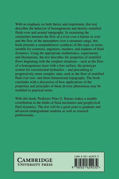 With an emphasis on both theory and experiment, this text describes the behaviour of homogeneous and density-stratified fluids over and around topography. In examining the similarities between the flow of a river over a barrier or weir and the flow of the atmosphere over a mountain range, this book presents a comprehensive synthesis of this topic in terms suitable for scientists, engineers, teachers and students of fluid dynamics. With this book, Professor Baines makes a notable contribution to the fields of fluid mechanics and geophysical fluid dynamics. The text will be a great asset to graduate and advanced undergraduate students, as well as to research professionals.