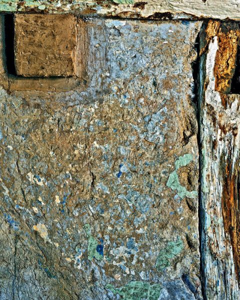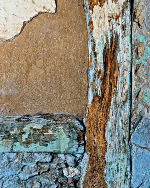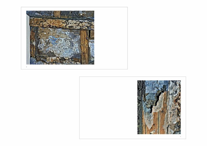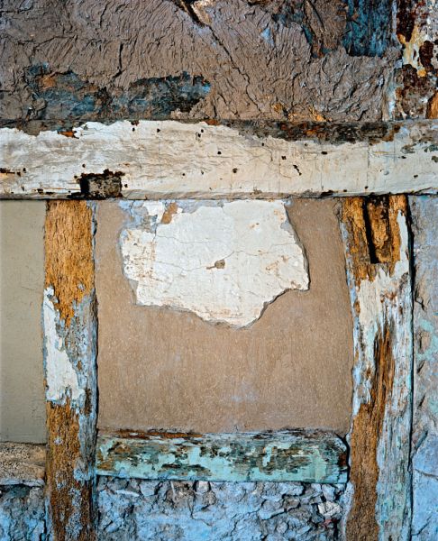 Topographical Histories presents Polidori's 2016 photos of the interior walls of the building, whose glorious crumbling layers-fourteenth-century structures of wattle and daub, clay bricks and plaster, and remnants of paint and wallpaper from different centuries-bear witness to living history. Polidori focuses on the subtle colorations and depth and complexity of these surfaces, creating an unconventional, painterly architectural portrait.