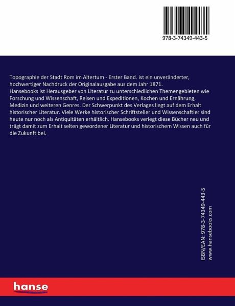 Topographie der Stadt Rom im Altertum - Erster Band. ist ein unveränderter, hochwertiger Nachdruck der Originalausgabe aus dem Jahr 1871.