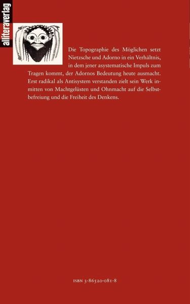 Die Topographie des Möglichen setzt Nietzsche und Adorno in ein Verhältnis, in dem jener asystematische Impuls zum Tragen kommt, der Adornos Bedeutung heute ausmacht. Erst radikal als Antisystem verstanden zielt sein Werk inmitten von Machtgelüsten und Ohnmacht auf die Selbstbefreiung und die Freiheit des Denkens.