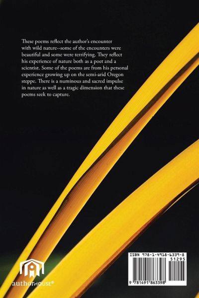 These poems reflect the author's encounter with wild nature--some of the encounters were beautiful and some were terrifying. They reflect his experience of nature both as a poet and a scientist. Some of the poems are from his personal experience growing up on the semi-arid Oregon steppe. There is a numinous and sacred impulse in nature as well as a tragic dimension that these poems seek to capture.