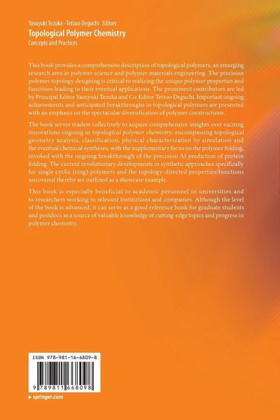 This book provides a comprehensive description of topological polymers, an emerging research area in polymer science and polymer materials engineering. The precision polymer topology designing is critical to realizing the unique polymer properties and functions leading to their eventual applications. The prominent contributors are led by Principal Editor Yasuyuki Tezuka and Co-Editor Tetsuo Deguchi. Important ongoing achievements and anticipated breakthroughs in topological polymers are presented with an emphasis on the spectacular diversification of polymer constructions. The book serves readers collectively to acquire comprehensive insights over exciting innovations ongoing in topological polymer chemistry, encompassing topological geometry analysis, classification, physical characterization by simulation and the eventual chemical syntheses, with the supplementary focus on the polymer folding, invoked with the ongoing breakthrough of the precision AI prediction of protein folding. The current revolutionary developments in synthetic approaches specifically for single cyclic (ring) polymers and the topology-directed properties/functions uncovered thereby are outlined as a showcase example.