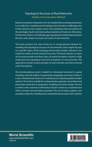 Roads are essential components of a city. Despite their increasing importance in our daily lives, modeling and simulating road networks is challenging due to their dynamic and complex nature. The underlying order and patterns of the seemingly chaotic and diverse physical patterns of roads are still unclear. Furthermore, there is a knowledge gap regarding the relationships between the size, scale, shape, structure, and space of road networks. This book presents the state-of-the-art in computational methods for modeling the topological structure of road networks. Each chapter focuses on a specific aspect of this topology and provides models, indicators, and empirical studies of road network structures. The book includes six types of structural models and three types of spatial simulation models to help understand the topological structural complexity of road networks. The appendices include several examples of road networks and their universal scale-free patterns. This interdisciplinary book is helpful for individuals interested in spatial modeling, network analysis, transportation geography, and urban studies. It is also a fundamental resource for modeling and computing spatial complex systems. The book is suitable for undergraduate, graduate, and professional researchers interested in geographic modeling and urban design. The text is written with moderate mathematical detail to enhance comprehension of the concepts and principles presented. The use of maps, graphics, and examples makes the modeling and computational processes more intuitive.