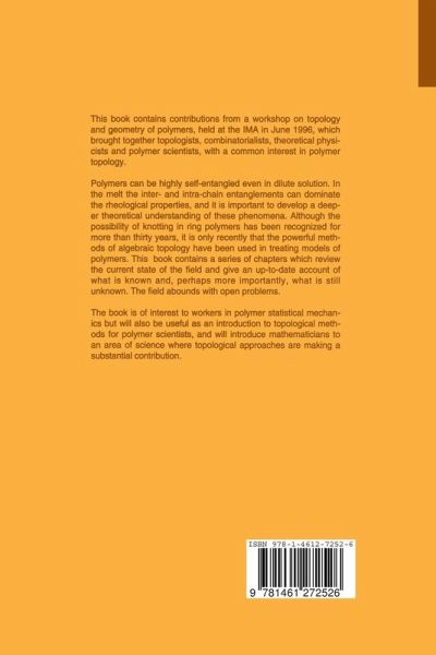 This IMA Volume in Mathematics and its Applications TOPOLOGY AND GEOMETRY IN POLYMER SCIENCE is based on the proceedings of a very successful one-week workshop with the same title. This workshop was an integral part of the 1995-1996 IMA program on "Mathematical Methods in Materials Science." We would like to thank Stuart G. Whittington, De Witt Sumners, and Timothy Lodge for their excellent work as organizers of the meeting and for editing the proceedings. We also take this opportunity to thank the National Science Foun dation (NSF), the Army Research Office (ARO) and the Office of Naval Research (ONR), whose financial support made the workshop possible. A vner Friedman Robert Gulliver v PREFACE This book is the product of a workshop on Topology and Geometry of Polymers, held at the IMA in June 1996. The workshop brought together topologists, combinatorialists, theoretical physicists and polymer scientists, who share an interest in characterizing and predicting the microscopic entanglement properties of polymers, and their effect on macroscopic physical properties.