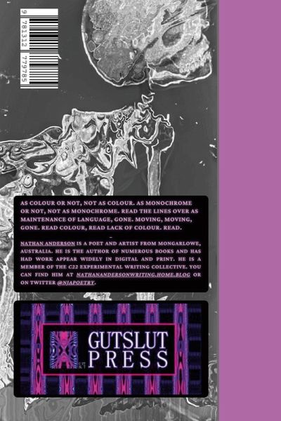 PRAISE FOR TOPOLOGY AS MONOCHROME BY NATHAN ANDERSON "Topology as Monochrome, like much of Nathan Anderson's work, engages with the poetic form itself; the shifting landscape of the page provoking the reader's eye and forcing us to think beyond the traditional confines of poetry. Anderson's poetry allows the reader space for wandering and contemplation, while lending itself to repeated readings. Topology as Monochrome is both a visual and a verbal feast moving between dense imagery and playful layout. Anderson's book is an exciting and inspiring voyage through the possibilities of radical form. I find myself consistently surprised, delighted, and provoked by Anderson's writing. I'm never bored by his work and Topology as Monochrome is no exception. Nathan Anderson is a poet worth following closely and devouring each new work with awe and joy. Topology as Monochrome is an excellent foray into Nathan Anderson's inventiveness, playfulness, and commitment to expanding and engaging with poetry and all its diverse possibilities." - Joshua Martin __ "Nathan Anderson's work is faithful to its title. Unraveling the interconnections and antipodes all may acknowledge but too few, outside the poets and philosophers (and this is a wonderful work true to both those vital temperaments), want questioned of popular existence, this collection pulls the reader along labyrinthic expositions of those exchanges of sound and silence, proximity and distance, intellect and will, stasis and movement, destruction and coalescence, so as to announce in the face of the loud and cheaply colourful of so much this postmodern age (think politics, think fashion) the true horror of what subsists these-a layout of monochrome found screaming Truth, reclaiming Life. A text that, by its own vivacity, moves those radiants of the deeply poetic, Topology as Monochrome re-makes vibrant the bland if ordinarily mundane. This is to be expected, after all, of a poetry saying Yes to Life and thereby proving it in the face of contemporary blasé." - Andrew Cyril Macdonald