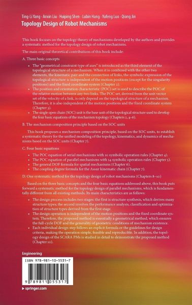 This book focuses on the topology theory of mechanisms developed by the authors and provides a systematic method for the topology design of robot mechanisms.
