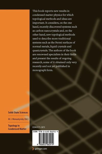This book reports new results in condensed matter physics for which topological methods and ideas are important. It considers, on the one hand, recently discovered systems such as carbon nanocrystals and, on the other hand, new topological methods used to describe more traditional systems such as the Fermi surfaces of normal metals, liquid crystals and quasicrystals. The authors of the book are renowned specialists in their fields and present the results of ongoing research, some of it obtained only very recently and not yet published in monograph form.