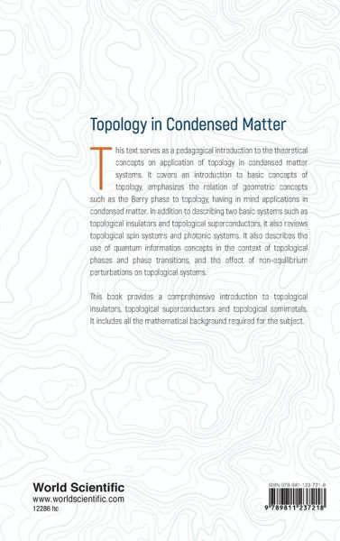 This text serves as a pedagogical introduction to the theoretical concepts on application of topology in condensed matter systems. It covers an introduction to basic concepts of topology, emphasizes the relation of geometric concepts such as the Berry phase to topology, having in mind applications in condensed matter. In addition to describing two basic systems such as topological insulators and topological superconductors, it also reviews topological spin systems and photonic systems. It also describes the use of quantum information concepts in the context of topological phases and phase transitions, and the effect of non-equilibrium perturbations on topological systems. This book provides a comprehensive introduction to topological insulators, topological superconductors and topological semimetals. It includes all the mathematical background required for the subject. There are very few books with such a coverage in the market.