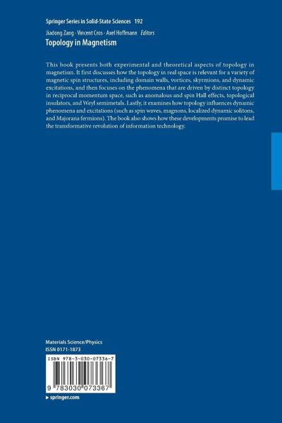 This book presents both experimental and theoretical aspects of topology in magnetism. It first discusses how the topology in real space is relevant for a variety of magnetic spin structures, including domain walls, vortices, skyrmions, and dynamic excitations, and then focuses on the phenomena that are driven by distinct topology in reciprocal momentum space, such as anomalous and spin Hall effects, topological insulators, and Weyl semimetals. Lastly, it examines how topology influences dynamic phenomena and excitations (such as spin waves, magnons, localized dynamic solitons, and Majorana fermions). The book also shows how these developments promise to lead the transformative revolution of information technology.