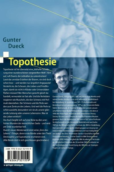 Gunter Dueck, Jahrgang 1951, lebt mit seiner Frau Monika in Waldhilsbach bei Heidelberg. Er studierte Mathematik und Betriebswirtschaftslehre in Göttingen. Nach der Promotion und Habilitation war er von 1982 bis 1987 Professor für Mathematik an der Universität Bielefeld. Mit seinem akademischen Vater Rudolf Ahlswede gewann er den 1990 IEEE Information Theory Society Prize Paper Award für eine neue Theorie der Nachrichtenidentifikation. 1987 wechselte er zum Wissenschaftszentrum Heidelberg der IBM und gründete eine große Arbeitsgruppe für industrielle Optimierungen. Danach baute er die "Buisness Intelligence Services" der IBM Deutschland auf. 1997 wurde er zum IBM Distinguished Engineer ernannt. Heute ist er Chief Technologist für Innovation und arbeitet an strategischem Neugeschäft der IBM. Gunter Dueck ist IEEE Fellow, korrespondierendes Mitglied der Akademie der Wissenschaften zu Göttingen und Mitglied der IBM Academy of Technology.
