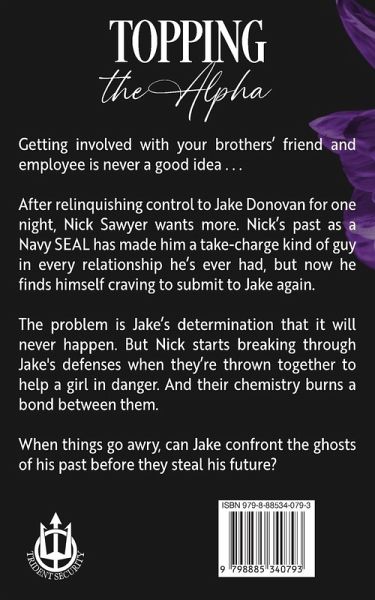 "A delicious mix of domination, submission, and suspense." ~ NY Times and USA Today Bestselling Author Nicole EdwardsGetting involved with your brothers' friend and employee is never a good idea...After relinquishing control to Jake Donovan for one night, Nick Sawyer wants more. Nick's past as a Navy SEAL has made him a take-charge kind of guy in every relationship he's ever had, but now he finds himself craving to submit to Jake again.The problem is Jake's determination that it will never happen. But Nick starts breaking through Jake's defenses when they're thrown together to help a girl in danger. And their chemistry burns a bond between them.When things go awry, can Jake confront the ghosts of his past before they steal his future?The Trident Security series contains D/s relationships, passionate romance, nail-biting suspense, and happily-ever-afters. This title contains an MM Romance between a Dom and his submissive that heats up the pages. The series is best read in order.
