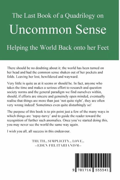 This is the final tome in a series of 4 books about Eden Fruitarianism. The books do not require sequential reading as they are all complementary to one another. The focus of this particular one is on Anarchism, 'Vegan Anarchism' to be more precise. It highlights the madness of this world, and shows the way forward, by bringing more sanity, through the understanding of and abidance by Nature's Laws. This book has a special chapter dedicated to the current Covid19 Plandemic.