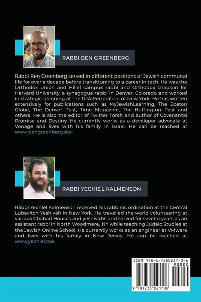 Technology is in dire need of ethical consideration. Torah && Tech is a discussion at the intersection of one of the world's oldest wisdom traditions and the modern technological world. How do we understand artificial intelligence? What is mentorship in a fast-paced business environment? Who owns code? What is the role of self-interest? These and many other questions are covered in this volume of ideas from two rabbis turned software developers. Ethics and technology are not an either/or proposition. The two must walk hand-in-hand in order to shape the ever-evolving world around us for the good and betterment of all people. Torah && Tech is an exploration into that crucial conversation.