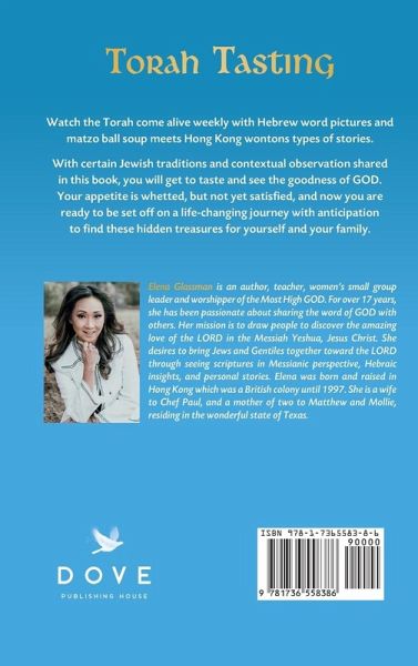 Have you wanted to read the Bible and dig deeper in GOD's Word? Have you ever wanted to see GOD's word come alive and experience it in tangible ways in your life? Watch the Torah come alive weekly with Hebrew word pictures and matzo ball soup meets Hong Kong wontons types of stories. The Torah (first 5 books in the Old Testament, also known as the Books of Moses) are divided into weekly reading Torah readings. Jewish people around the world read the very same every week, no matter where they live. Each Torah Portion is packed with the richness of GOD's wisdom displaying His might and mercy. I believe each week's portion can be a stand-alone starting trigger point for in-depth self-study and research. Rabbis have been teaching these parashiot (Torah Portions in Hebrew) for generations. GOD's Word never becomes outdated or irrelevant. With certain Jewish traditions, contextual observation and personal stories shared in this book, my hope is that you will get to taste and see the goodness of GOD, your appetite whetted, not yet satisfied and now you are ready to be set off on a life-changing journey with anticipation to find these hidden treasures for yourself and your family. Thank you for joining me on this Torah Tasting Tour! Whether you are a Christian (brand new or seasoned), a Jew, or someone who has never read the Bible before, I pray that you will be inspired and begin your own Torah-tasting journey and discover the deeper things the LORD has in store for you and your family.