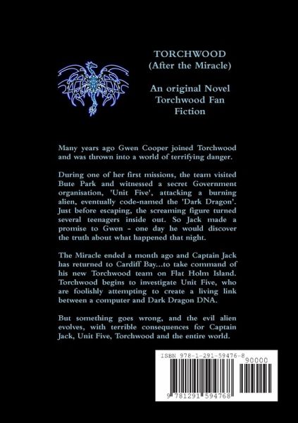 Many years ago Gwen Cooper joined Torchwood and was thrown into a world of terrifying danger. During one of her first missions, the team visited Bute Park and witnessed a secret Government organisation, 'Unit Five', attacking a burning alien, eventually code-named the 'Dark Dragon'. Just before escaping, the burning screaming humanoid turned several teenagers inside out. So Jack made a promise to Gwen - one day he would discover the truth about what happened that night. The Miracle ended a month ago and Captain Jack has returned to Cardiff Bay...to take command of his new Torchwood team on Flat Holm Island. Torchwood begins to investigate Unit Five, who are foolishly attempting to create a living link between a computer and Dark Dragon DNA. But something goes wrong, and the evil alien evolves, with terrible consequences for Captain Jack, Unit Five, Torchwood and the entire world.
