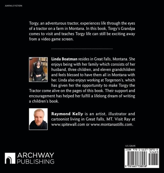 Torgy, an adventurous tractor, experiences life through the eyes of a tractor on a farm in Montana. In this book, Torgy's Grandpa comes to visit and teaches Torgy life can still be exciting away from a video game screen.