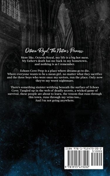 Octavia Royal, The Nation's Princess. More like, Octavia Royal, my life is a big hot mess. My father's death has me back in my hometown, and nothing is as I remember. Echoes Cove Prep is a place where dreams go to die. Where everyone wants to be a mean girl, no matter what they sacrifice and the three boys who were once my saviors, run the place. Only now they're my worst nightmare. There's something sinister writhing beneath the surface of Echoes Cove. Tangled up in the web of deadly secrets, a wicked game of survival, these people are about to learn, the venom that runs through this town, runs through my veins too... And I'm not going anywhere. This series is a new adult, dark contemporary romance with off the charts angst, enemies to lovers themes, some scenes of bullying, along with four hot guys and one girl. The book contains sexual scenes, mature language and some violence. Please read the content warnings included in the book, because this book is dark. A full list of trigger warnings can be found at the front of the book. Read the Complete Series! The Knights of Echoes Cove series must be read in the following order: Book 1: Tormented Royal Book 2: Lost Royal Book 3: Caged Royal Book 4: Forever Royal
