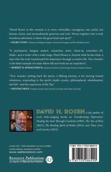 "David Rosen in this memoir is in turns vulnerable, courageous, sad, joyful, too human, funny, and extraordinarily generous and wise. Woven together into a truly wondrous adventure, it shows his great heart and spirit." --Mark Unno, Professor of Religious Studies, University of Oregon, and Shin Buddhist Priest "A psychiatrist, Jungian analyst, researcher, artist, stand-up comedian--Dr. Nada--and a writer with a wide range, David Rosen is, beyond what he has done, a man who has truly transformed his depression through a creative life. Torn Asunder is the latest example of a man whose life and work are an inspiration." --Robert D. Romanyshyn, Emeritus Professor of Psychology, Pacifica Graduate Institute "Torn Asunder, putting back the pieces, a lifelong journey, is for moving toward wholeness, responding to the spirit's depth--poetic, philosophical, wholehearted, and felt--and the experience of the Tao." --Shen Heyong, Professor, South China Normal University and Fudan University