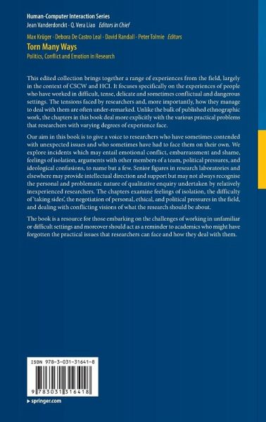 This edited collection brings together a range of experiences from the field, largely in the context of CSCW and HCI. It focuses specifically on the experiences of people who have worked in difficult, tense, delicate and sometimes conflictual and dangerous settings. The tensions faced by researchers and, more importantly, how they manage to deal with them are often under-remarked. Unlike the bulk of published ethnographic work, the chapters in this book deal more explicitly with the various practical problems that researchers with varying degrees of experience face. Our aim in this book is…mehr