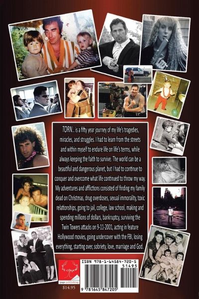 TORN... is a fifty-year journey of my life's tragedies, miracles, and struggles. I had to learn from the streets and within myself to endure life on life's terms, while always keeping the faith to survive. The world can be a beautiful and dangerous planet, but I had to continue to conquer and overcome what life continued to throw my way. My adventures and afflictions consisted of finding my family dead on Christmas, drug overdoses, sexual immorality, toxic relationships, going to jail, college, law school, making and spending millions of dollars, bankruptcy, surviving the Twin Towers attacks on 9-11-2001, acting in feature movies in Hollywood, undercover with the FBI, losing everything, starting over, sobriety, love, marriage, and God.