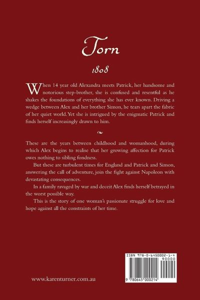 Yorkshire 1808 When 14 year old Alexandra meets Patrick, her handsome and notorious step-brother, she is confused and resentful as he shakes the foundations of everything she has ever known. Driving a wedge between Alex and her brother Simon, he tears apart the fabric of her quiet world. Yet she is intrigued by the enigmatic Patrick and finds herself increasingly drawn to him. These are the years between childhood and womanhood, during which Alex begins to realise that her growing affection for Patrick owes nothing to sibling fondness. But these are turbulent times for England and Patrick and Simon, answering the call of adventure, join the fight against Napoleon with devastating consequences. In a family ravaged by war and deceit Alex finds herself betrayed in the worst possible way. This is the story of one woman's passionate struggle for love and hope against all the constraints of her time.