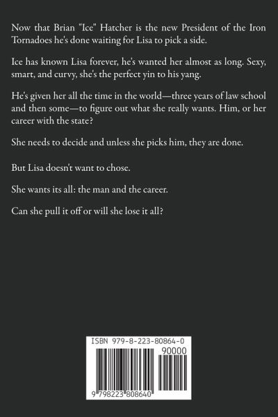 Now that Brian "Ice" Hatcher is the new President of the Iron Tornadoes he's done waiting for Lisa to pick a side. Ice has known Lisa forever, he's wanted her almost as long. Sexy, smart, and curvy, she's the perfect yin to his yang. He's given her all the time in the world—three years of law school and then some—to figure out what she really wants. Him, or her career with the state? She needs to decide and unless she picks him, they are done.¿But Lisa doesn't want to chose. She wants its all: the man and the career. Can she pull it off or will she lose it all?