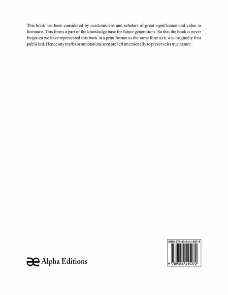This book has been considered by academicians and scholars of great significance and value to literature. This forms a part of the knowledge base for future generations. So that the book is never forgotten we have represented this book in a print format as the same form as it was originally first published. Hence any marks or annotations seen are left intentionally to preserve its true nature.