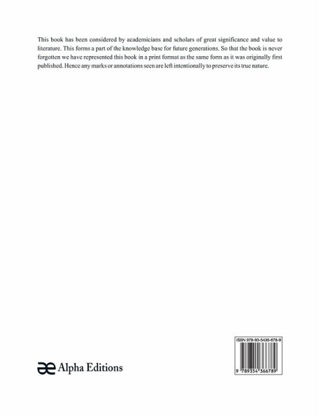 This book has been considered by academicians and scholars of great significance and value to literature. This forms a part of the knowledge base for future generations. So that the book is never forgotten we have represented this book in a print format as the same form as it was originally first published. Hence any marks or annotations seen are left intentionally to preserve its true nature.