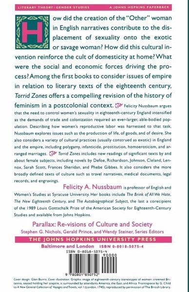 How did the creation of the "Other" woman in English narratives contribute to the displacement of sexuality onto the exotic or savage woman? How did this cultural invention reinforce the cult of domesticity at home? What were the social and economic forces driving the process? Among the first books to consider issues of empire in relation to literary texts of the eighteenth century, Torrid Zones offers a compelling revision of the history of feminism in a postcolonial context. Felicity Nussbaum argues that the need to control women's sexuality in eighteenth-century England intensified as the demands of trade and colonization required an ever-larger, able-bodied population. Describing how women's reproductive labor was harnessed to that task, Nussbaum explores issues such as the production of life, of goods, and of desire. She also considers a variety of cultural practices (usually construed as exotic) in England and the empire, including polygamy, infanticide, prostitution, homoeroticism, and arranged marriages. Torrid Zones includes new readings of significant texts by and about female subjects, including novels by Defoe, Richardson, Johnson, Cleland, Lennox, Sarah Scott, Frances Sheridan, and Phebe Gibbes. It also considers the more broadly defined texts of culture such as travel narratives, medical documents, legal records, and engravings. "I take as a central metaphor for the consideration of maternity and sexuality the concept of torrid zones, both the geographical torrid zones of the territory between the Tropic of Cancer and the Tropic of Capricorn, and the torrid zone mapped onto the human body, especially the female body. A premise of my study is that the contrasts among the torrid, temperate, and frigid zones of the globe are formative in imagining that a sexualized woman of empire is distinct from domestic English womanhood. The general category of 'woman' muddles the binaries between mother and whore, self and Other, center and periphery."--from the Introduction