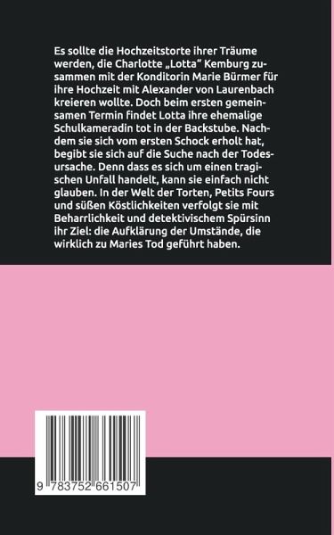 Es sollte die Hochzeitstorte ihrer Träume werden, die Charlotte `Lotta´ Kemburg zusammen mit der Konditorin Marie Bürmer für ihre Hochzeit mit Alexander von Laurenbach kreieren wollte. Doch beim ersten gemeinsamen Termin findet Lotta ihre ehemalige Schulkameradin tot in der Backstube. Nachdem sie sich vom ersten Schock erholt hat, begibt sie sich auf die Suche nach der Todesursache. Denn dass es sich um einen tragischen Unfall handelt, kann sie einfach nicht glauben. In der Welt der Torten, Petits Fours und süßen Köstlichkeiten verfolgt sie mit Beharrlichkeit und detektivischem Spürsinn ihr Ziel: die Aufklärung der Umstände, die wirklich zu Maries Tod geführt haben.