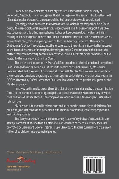In one of his few moments of sincerity, the late leader of the Socialist Party of Venezuela, Aristóbulo Istúriz, recognized that if the regime of the lieutenant colonel (retired) eliminated exchange control, the source of the Boli bourgeoisie would be collapsed. By analogy, it can be stated that without torture, which is not temporary but a State policy, the narco-dictatorship would fade, since it would lose its basis of support if we take into account that this crime against humanity has as its executors low, medium and high-ranking military and police officers and Cuban henchmen,…mehr