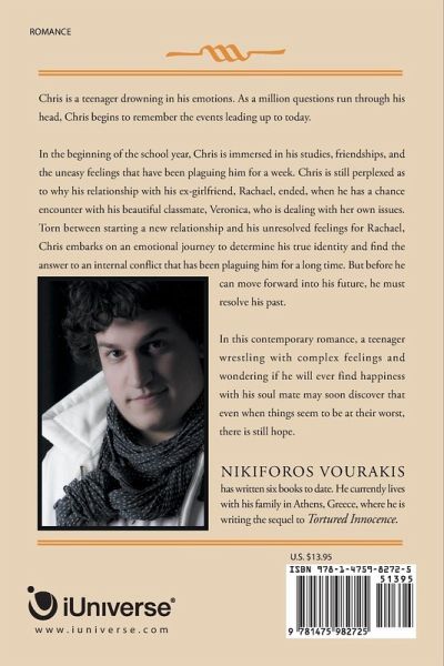 Chris is a teenager drowning in his emotions. As a million questions run through his head, Chris begins to remember the events leading up to today. In the beginning of the school year, Chris is immersed in his studies, friendships, and the uneasy feelings that have been plaguing him for a week. Chris is still perplexed as to why his relationship with his ex-girlfriend, Rachael, ended, when he has a chance encounter with his beautiful classmate, Veronica, who is dealing with her own issues. Torn between starting a new relationship and his unresolved feelings for Rachael, Chris embarks on an emotional journey to determine his true identity and find the answer to an internal conflict that has been plaguing him for a long time. But before he can move forward into his future, he must resolve his past. In this contemporary romance, a teenager wrestling with complex feelings and wondering if he will ever find happiness with his soul mate may soon discover that even when things seem to be at their worst, there is still hope.