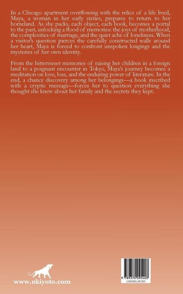 In a Chicago apartment overflowing with the relics of a life lived, Maya, a woman in her early sixties, prepares to return to her homeland. As she packs, each object, each book, becomes a portal to the past, unlocking a flood of memories: the joys of motherhood, the complexities of marriage, and the quiet ache of loneliness. When a visitor's question pierces the carefully constructed walls around her heart, Maya is forced to confront unspoken longings and the mysteries of her own identity. From the bittersweet memories of raising her children in a foreign land to a poignant encounter in Tokyo, Maya's journey becomes a meditation on love, loss, and the enduring power of literature. In the end, a chance discovery among her belongings-a book inscribed with a cryptic message-forces her to question everything she thought she knew about her family and the secrets they kept.