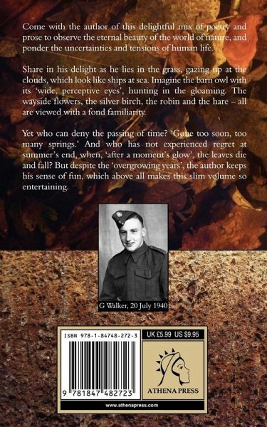 Come with the author of this delightful mix of poetry and prose to observe the eternal beauty of the world of nature, and ponder the uncertainties and tensions of human life. Share in his delight as he lies in the grass, gazing up at the clouds, which look like ships at sea. Imagine the barn owl with its 'wide, perceptive eyes', hunting in the gloaming. The wayside flowers, the silver birch, the robin and the hare - all are viewed with a fond familiarity. Yet who can deny the passing of time? 'Gone too soon, too many springs.' And who has not experienced regret at summer's end, when, 'after a moment's glow', the leaves die and fall? But despite the 'overgrowing years', the author keeps his sense of fun, which above all makes this slim volume so entertaining.