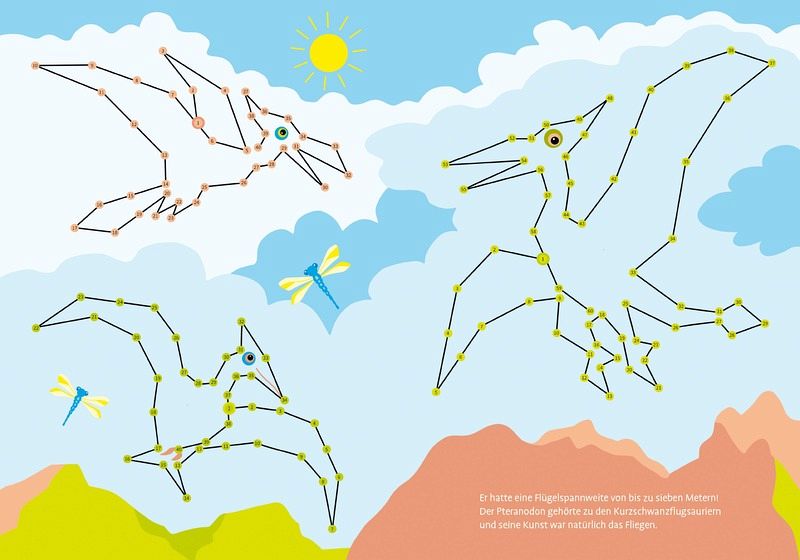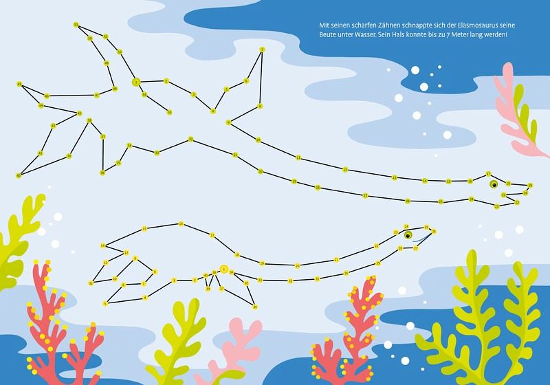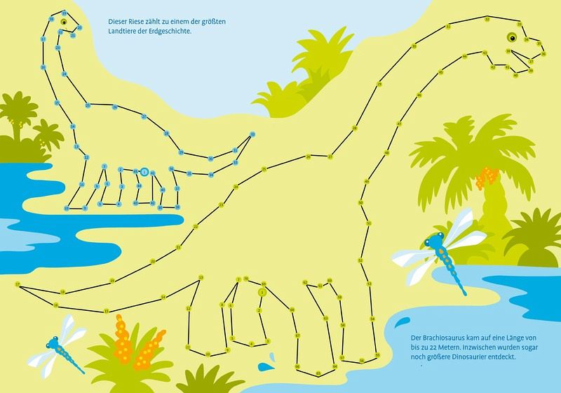 Punkte verbinden und Staunen. Die schönen Szenen sind noch nicht vollständig. Um das Bild fertigzustellen, müssen die Zahlen von 1 bis maximal 100 miteinander verbunden werden - und schwuppdiwupp sind die Kunstwerke fertiggestellt. Kurze, ergänzende Texte erzählen Spannendes zu den Dinos. Ganz viel schlaue Beschäftigung für Kinder ab 7 Jahren.